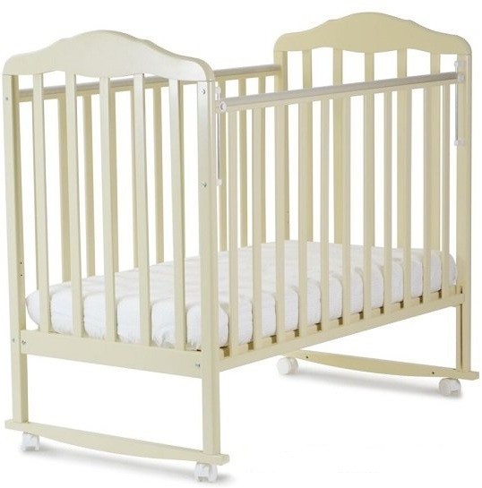 120119 Кровать детская Березка (автостенка, колеса, качалка, пакладка ПВХ, бежевы) Размер 1200*600мм