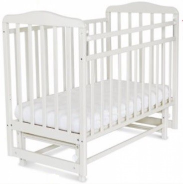 164001 Кровать детская Митенька с маятником (опускающаяся планка, белая) размер ложа 1200х600 мм белый