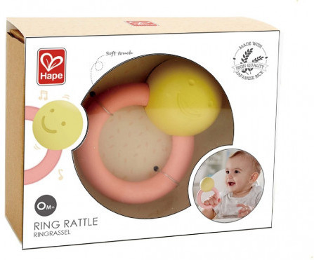 Сделанная из безопасного материала на основе риса, эта погремушка имеет веселое лицо, прикрепленное к кольцу. Легко схватить и удерживать.