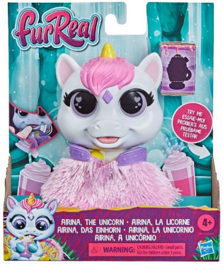 FurReal "Animalu? Interactiv" (in asort) Cine este aceasta? O Pisica sau Unicorn Furrial Friends! Ochii ei mari va vor spune cum se simte animalul de companie. Cand vrea sa doarma, ochii ei devin albastri, iar cand ii este foame - verzi. Ro?u inseamna ca animalu?ul este pu?in obraznic. Pe spatele animalului de companie sunt aripi frumoase din ?esatura. Trata?i animalul fantastic cu delicatese sau apasa?i butonul din spate pentru a-l bate din aripi. Va raspunde cu sunete amuzante ?i iluminare. Daca deliciul este prea departe, apasa?i limba animalului ?i vede?i ce se intampla. Ai grija de animalu?ul magic ?i ve?i deveni cei mai buni prieteni! Con?inut: 1 animal de companie, accesoriu, 1 baterie AA, instruc?iuni Pentru copii de la 4 ani.