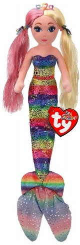 Очень длинные волосы, пропитанные майларом, готовы к моделированию, расчесыванию и плетению. У русалки корона и блестящие бантики. Его блестящий хвост - цвета радуги. Включает официальный Ty Heart с днем ??рождения и стихи. Очистка производится только на поверхности. Размер: 27 см Рекомендуемый возраст: 3 года +