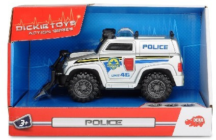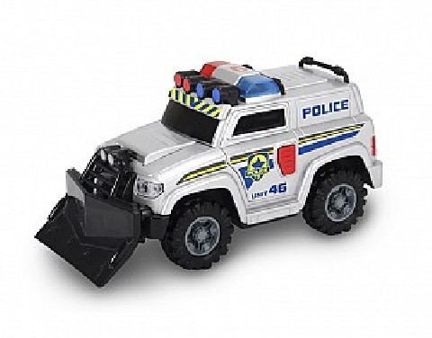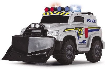 Полицейская машина от торговой марки Dickie представляет собой модель настоящего спасательно-штурмового автомобиля полиции. Щит, который установлен на передней части машинки, предназначен для крушения стен во время штурмовых операций в целях захвата преступников или освобождения заложников.