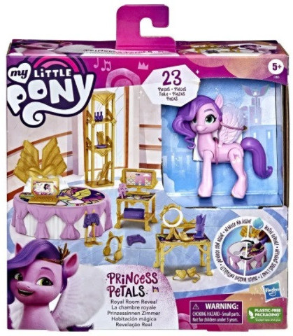 My Little Pony "Camera Regala" Decoreaza o camera demna de o printesa, cu Pipp Petals Royal Room Reveal! Markerul special dezvaluie desene magice ascunse pe accesorii. Decoreaza camera si gaseste desenele regale misterioase. Aranjeaza camera si imagineaza-ti cum Pipp face un livestream despre viata ei de printesa. Setul include figurina Pipp Petals si accesorii pentru dormitor inspirate de stilul printesei. Varsta recomandata: 5 ani +