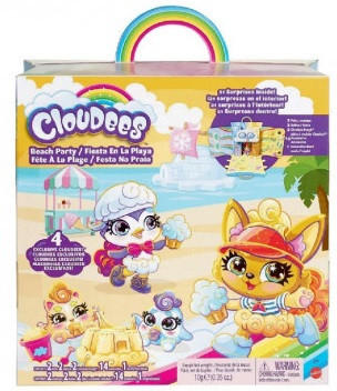 Праздничный набор коллекционных фигурок "Cloudees" (в асс.) Эти наборы-сюрпризы с коллекционными фигурками Cloudees включают много тематических аксессуаров, чтобы сделать вечеринку особенной. В каждый набор входит тесто-пластилин, который никогда не засыхает. Поэтому дети смогут мять, сжимать и давить его, чтобы создавать мороженое, прически и многое другое! Пластилин может храниться в специальных контейнерах, которые идут в наборе. Также в наборы входят две большие фигурки Cloudees с пушистыми хвостами и две мини-фигурки, у которых есть небольшие крючки, поэтому дети смогут брать их куда угодно. Cloudees позволяет детям посетить волшебные вечеринки в облаках! Рекомендуемый возраст: 4 года +