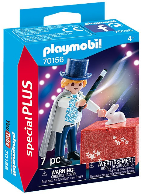 Фигурки: 1 волшебник Животные: 1 заяц Аксессуары: 1 волшебная коробка, 1 волшебная шляпа, 1 накидка
