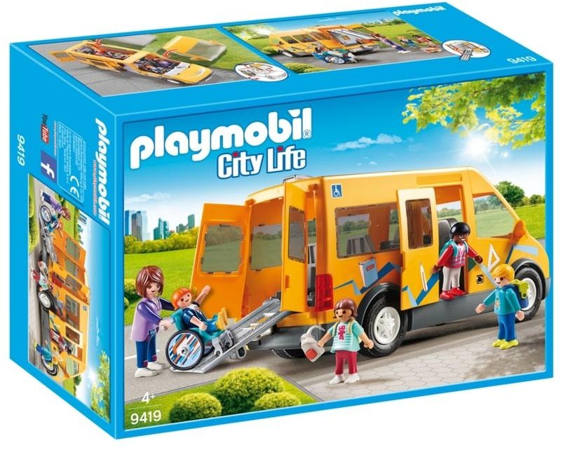 Этот яркий желтый автобус весело едет по дорогам Playmobil и везет детишек в школу. В нем очень удобные сидения и имеется пандус для колясок. Для того, чтобы рассадить всех по местам, снимите крышу автомобиля. В наборе женщина водитель, четыре фигурки детей и инвалидная коляска.