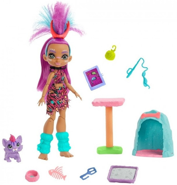 Set Cave Club "Pove?ti de Pe?tera" (in asort) Noua serie de papu?i Cave Club de la compania Mattel sunt papu?i articulate din era dinozaurilor. Cu papu?ile ?i jucariile Cave Club, copiii pot calatori in timp ?i pot descoperi noi pove?ti salbatice cu personajele lor preistorice preferate. Setul de piese cu atatea pove?ti va face un cadou minunat pentru copii. Setul include: papu?a, animal de companie ?i alte accesorii. Inal?imea papu?ii: 21cm Varsta recomandata: de la 4 ani
