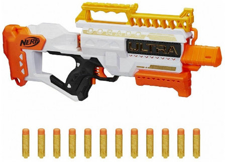Hasbro Бластер Nerf "Ultra Dorado" Бластер включает в себя 12 специальных золотых стрел Nerf Ultra. Этот моторизованный бластер с 6 стрелами быстро выпускает стрелы. Запустите двигатель и нажмите кнопку спуска затвора, чтобы запустить по одной стрелке за раз. Быстрая зарядка позволяет быстро перезаряжать - цилиндр с 6 стрелками, поэтому вы можете видеть, сколько стрелок осталось, и знать, когда перезарядить. Включает бортовое хранилище на 6 дротиков. Бластеры Nerf Ultra выводят вашу игру на новый уровень благодаря передовому дизайну и производительности, которые обеспечивают невероятное расстояние, точность и скорость. Бластеры Nerf Ultra работают только со стрелами Nerf Ultra. Необходимые батареи: 6 AA 1,5 В (не входят в комплект). Рекомендуемый возраст: 8 лет +