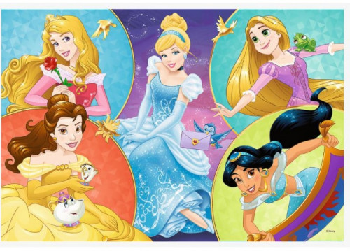 Пазлы на 100 элементов с изображением в виде коллажа пяти милых Принцесс из популярных анимационных фильмов Уолта Диснея.