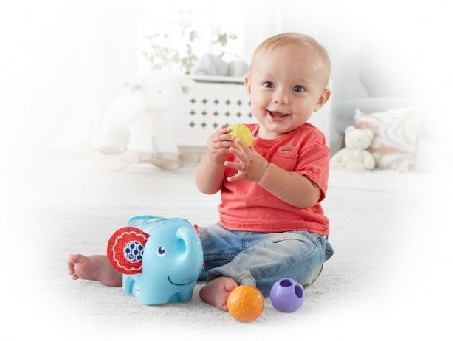 Подружившись с этим большим, но не очень устойчивым слоненком, ваш ребенок сможет вкладывать шарики и играть с великолепной неваляшкой: стоит только толкнуть - и она поколеблется, демонстрируя малышу причинно-следственную связь.