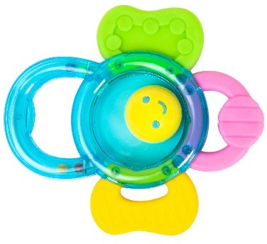Благодаря легкому весу и продуманной форме погремушку удобно держать в ручке. Массажер для десен "Солнышко" снимет дискомфорт при прорезывании зубок, а гремящие шарики отвлекут внимание ребенка. Кроме того, игрушка развивает хватательные движения, учит держать предмет в ручке, развивает внимание.