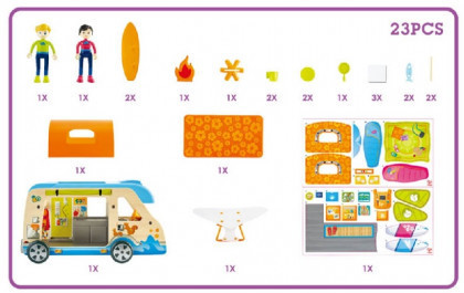 Отправляйтесь в удивительное приключение в кемпинг с пикниками, серфингом и даже дельтапланеризмом с этим великолепным, простым в переноске автофургоном с куклами и принадлежностями!