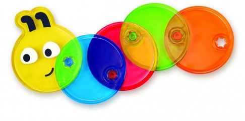 Color Mix Caterpillar (E1004) от Hape - увлекательная игрушка для маленьких детей. Он побуждает детей изучать цвета и визуальные навыки. Гусеница состоит из 5-ти прозрачных цветных дисков, соединенных между собой. Когда два цвета накладываются друг на друга, образуется новый цвет. Диски, соединенные вместе, плавно перемещаются, и их можно разделить и повторно связать, чтобы смешать разные цвета. Поощряйте ребенка исследовать смешение цветов и просматривать каждый цветной диск. Посмотрите на мир в желтом, синем, красном, зеленом и оранжевом, а также во всех комбинациях смешанных цветов. Диаметр каждого диска составляет примерно 5,5 см. Возраст 2-6 лет