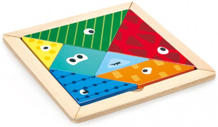 Перемещайте части в различные узоры Tangram или создавайте свои собственные формы и узоры! На одной стороне фигурок - забавные глазки.