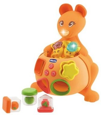 Обучающая игрушка-сортер «Кенгуру», итал.-англ. превосходно подойдет для развития первых навыков логического и ассоциативного мышления. Играя, ребенок учится различать цвета, формы, фрукты, правильно вставлять в кенгуру формочки. На животике игрушки имеются кнопки и при нажатие можно услышать 3 забавные песенки. Нажав на кончик носика кенгура, Вы услышите веселые мелодии и звуки. Мама-кенгуру поет и разговаривает с ребенком на русском и английском языках, помогая, тем самым, изучать первые слова.