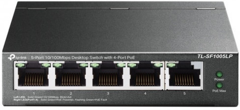 .5-port 10/100M TP-LINK PoE Switch, TL-SF1005LP, with 4 Port PoE, 41W Budget, steel case