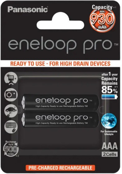 AAA Eneloop PRO 930mAh, Blister*2, Panasonic, BK-4HCDE/2CP