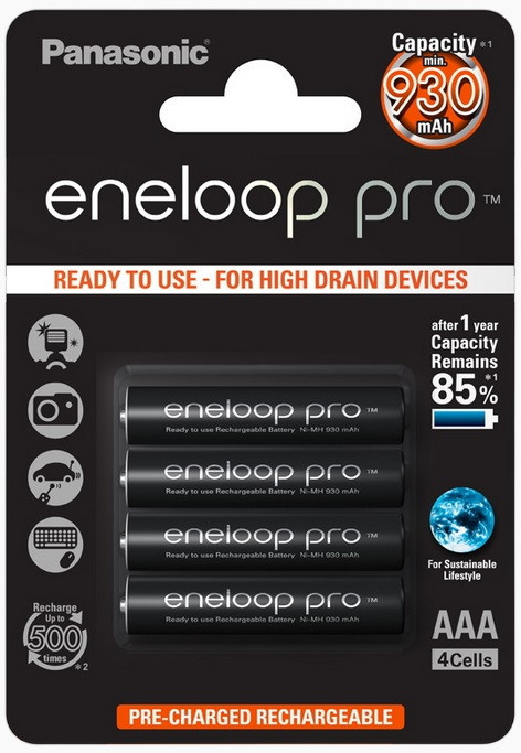 AAA Eneloop PRO 930mAh, Blister*4, Panasonic, BK-4HCDE/4CP