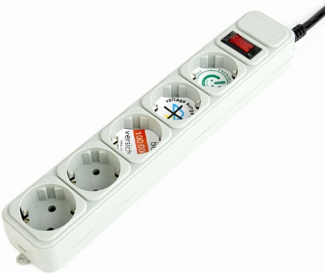 •  Gembird Surge Protector SPG3-B-6C, 5 Sockets, 1.8m, up to 250V AC, 16 A, safety class IP20, Grey