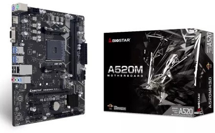 Материнская плата BIOSTAR A520MH 3.0, Socket AM4, AMD A520, Dual 2xDDR4-4933, APU AMD graphics, VGA, HDMI, 1xPCIe X16, 4xSATA3, RAID, 1xM.2 Slot, 2xPCIe X1, ALC897 HDA, GbE LAN, 6xUSB3.2, mATX