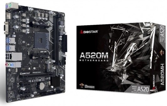 Материнская плата Biostar A520MH, Socket AM4, AMD A520, Dual 2xDDR4-4933, APU AMD graphics, VGA, HDMI, 1xPCIe X16, 4xSATA3, RAID, 1xM.2 Slot, 2xPCIe X1, ALC887 HDA, GbE LAN, 6xUSB3.2, mATX