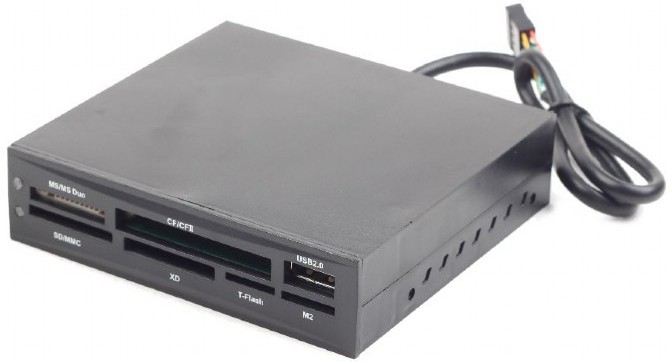 - Gembird Internal Card reader USB 2.0 18 in 1, SATA port, CF/MD/SM/MS/SD/MMC/XD card reader/writer, blackПоддерживаемые карты памяти: CompactFlash Type I и II, Microdrive, SmartMedia, xD picture card, Secure Digital, MMC, RS-MMC, Memory Stick, Memory Stick Pro, Memory Stick Duo Интерфейс: USB с подключением к внутренним разъемам МП Тип: внутренний Порты: USB порт на передней панели Слоты для карт памяти: CF, MMC, RS-MM