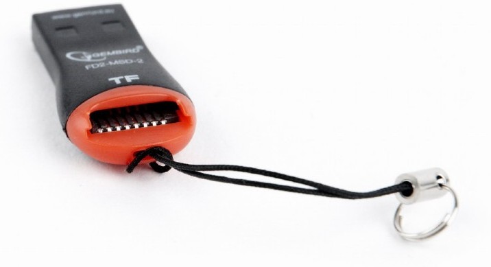 (21)- Card Reader Gembird FD2-MSD-3, MicroSDHC, Key ring cord, Black/Orange, USB2.0Card Reader Gembird FD2-MSD-3, MicroSDHC, Key ring cord, Black/Orange, USB2.0 Поддержка MicroSD карт, включая SDHC Миниатюрный высокоскоростной кардридер Всегда с собой на кольце с ключами Позволяет работать с MicroSD (также называемыми T-Flash или TransFlash) картами памяти Поддерживает карты SD High Capacity (SDHC)