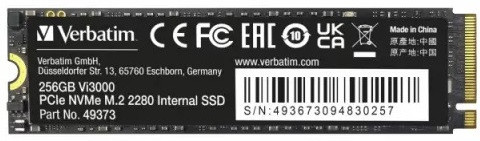 - M.2 NVMe SSD 256GB Verbatim Vi3000, Interface: PCIe3.0 x4 / NVMe 1.3, M2 Type 2280 form factor, Sequential Read 3300 MB/s, Sequential Write 1300 MB/s, Random Read 100K IOPS, Random Write 100K IOPS, Phison E13T, TBW: 185TB, 3D NAND TLCM.2 NVMe SSD 256GB Verbatim Vi3000, Interface: PCIe3.0 x4 / NVMe 1.3, M2 Type 2280 form factor, Sequential Read 3300 MB/s, Sequential Write 1300 MB/s, Random Read 100K IOPS, Random Write 100K IOPS, Phison E13T, TBW: 185TB, 3D NAND TLC Формфактор: M.2 Объем SSD: 256 ГБ Скорость чтения: 3300 МБ/с Скорость записи: 1300