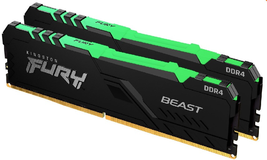 16GB (Kit of 2*8GB) DDR4-3733 Kingston FURY® Beast DDR4 RGB, PC29800, CL19, 1.35V, Auto-overclocking, Asymmetric BLACK low-profile heat spreader, Dynamic RGB effects Kingston FURY Infrared Sync technology, Intel XMP Ready (Extreme Memory Profiles)