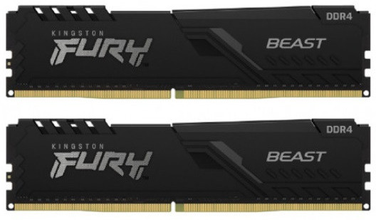 64GB (Kit of 2*32GB) DDR4-2666 Kingston FURY® Beast DDR4, PC21300, CL16, 1Gx8, 1.2V, Auto-overclocking, Asymmetric BLACK low-profile heat spreader, Intel XMP Ready (Extreme Memory Profiles)