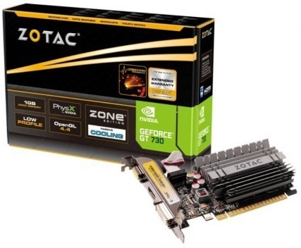 Видеокарта ZOTAC GeForce GT730 Zone Edition 2GB DDR3, 64bit, 902/1600Mhz, Low Profile, HDCP, DVI, HDMI