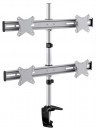 Настольный кронштейн для 4 мониторов, расположенных на столе или столе. Зажим на пол выполнен прочным и функциональным зажимом, применимым к конструкциям толщиной от 10 до 90 мм.