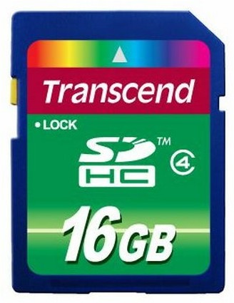 - 16GB SDHC Card (Class 4), Transcend "TS16GSDHC4" (R/W:18/6MB/s)