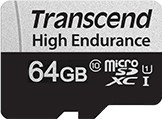 - 64GB MicroSDHC (Class 10), SD adapter, UHS-I, 300X, Transcend "TS64GUSDU1" Premium (R/W:90/25MB/s)