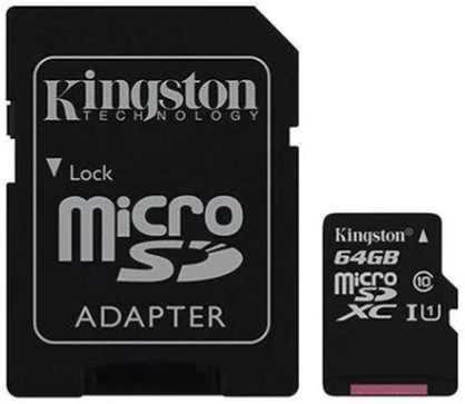 - Карта памяти Kingston 64 GB microSDHC + SD Adapter Class10 100MB/sКарта памяти Kingston 64 GB microSDHC + SD Adapter Class10 100MB/s