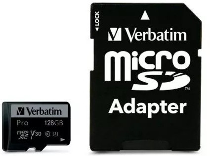 - 128GB microSD Class10 U3 UHS-I V30 + SD Adapter Verbatim Pro U3 microSDXC, 600x, Read up to: 90MB/s, Write up to: 45MB/s128GB microSD Class10 U3 UHS-I V30 + SD Adapter Verbatim Pro U3 microSDXC, 600x, Read up to: 90MB/s, Write up to: 45MB/s Бренд VERBATIM Описание Карта памяти для мобильных устройств Тип карты памяти microSD Тип карты памяти microSDXC Объём flash-накопителя 128 ГБ Cкорость записи не менее 45 Мб/с (UHS-I Class 10) Ада