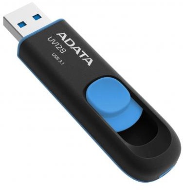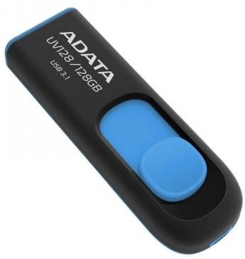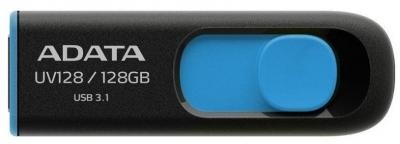 128GB USB3.1 Flash Drive ADATA UV128, Black-Blue, Plastic, Slider (R/W:90/40MB/s)