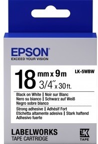 - Tape Cartridge EPSON 18mm/9m Strong Adhesive, Blk/Wht, LK5WBW C53S655012 Tape Cartridge EPSON 18mm/9m Strong Adhesive, Blk/Wht, LK5WBW C53S655012 Цвет ленты белый Цвет текста черный Тип ленты Повышенной адгезии Ширина ленты, мм. 18 Длина ленты, м. 9 Тип Ленты для принтеров Epson LabelWorks