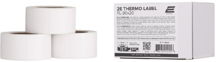 Термоэтикетка 2E-TL-30X20, изготовленная из специальной самоклеящейся бумаги, предназначена для печати информации на специальном термопринтере и упрощает процесс маркировки продукции. Размер – 30?20 мм. Один рулон содержит 700 этикеток (в комплекте 3 рулона).