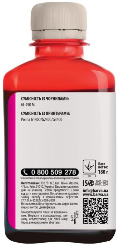 Описание Ink Barva for G series Canon magenta (GI-490 M) 180gr (G490-505)
