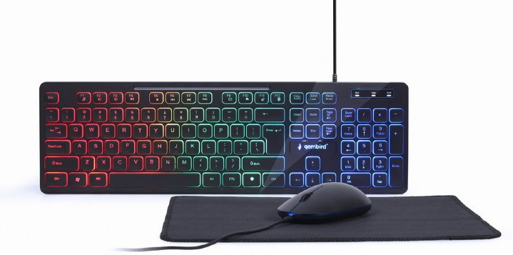 Gembird KBS-UML-01, 3-in-1 backlight desktop set, US layout, Black