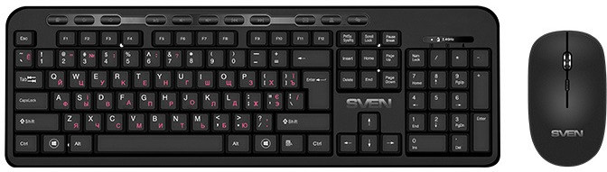 SVEN KB-C3200W, Wireless, Multimedia Keyboard & Mouse, 2.4GHz, (115 keys, 11 Fn-keys) + Mouse (3 + 1 (scroll wheel), 800/1200/1600 dpi), Nano receiver, USB, Black