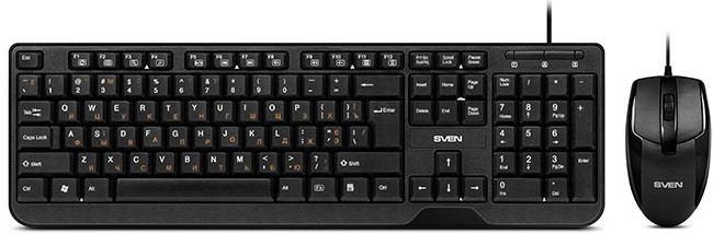 SVEN KB-S330C, Keyboard + Mouse, Waterproof design, Classic fullsize layout, USB, Black