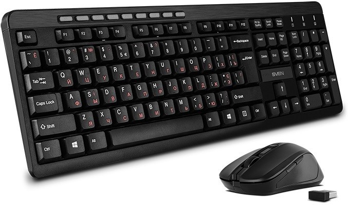Компания SVEN представила набор из клавиатуры и компьютерной мыши, позволяющий получить два компактных и надежных устройства, способных стать отличным дополнением любого рабочего места. Беспроводной ресивер у комплекта общий и займет всего один порт USB. Размеры приемника крайне невелики — если вы решите использовать KB-C3400W вместе с ноутбуком, его не придется вынимать при переноске.