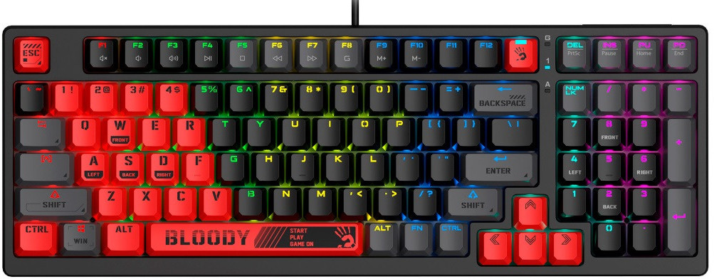 Gaming Keyboard Bloody S98 Sports, Mechanical, BLMS Switch Red, Double-Shot Keycaps, USB, Black/Red.