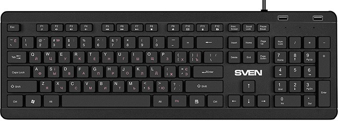 Keyboard SVEN KB-E5700H, Slim, Low-pro?le keys, Island-style, Fn key, 2xUSB ports, Black, USB