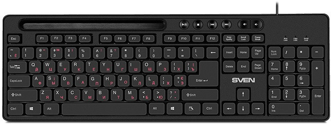 Keyboard SVEN KB-S302, Multimedia, Tray for smartphone, Black, USB