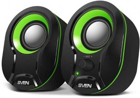 Колонки SVEN 290 Black-Green (USB), 2.0 / 2x2,5W RMS, Power LED, USB power supply