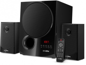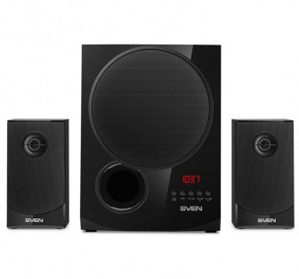 SVEN MS-2080 Black, 2.1 / 40W + 2x15W RMS, Bluetooth, FM-tuner, USB & SD card Input, Digital LED display, built-in clock, set the switch-off time, remote control, all wooden