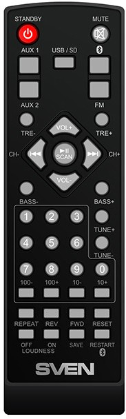 Техническое оснащение и функционал SVEN MC-20 впечатляют – высококачественные купольные ВЧ-динамики, деревянный корпус - необходимые атрибуты хорошей акустики. Кроме того, система оснащена удобным пультом управления, встроенным радио, информативным дисплеем, слотом для SD-карт и разъемом для USB flash. Модель может стать отличным помощником в озвучивании фильмов – благодаря оптическому входу ее можно подключать практически ко всем моделям современных телевизоров и получать чистый звук без помех. А еще SVEN MC-20 имеет функцию беспроводной передачи звука по Bluetooth – в этом случае вы сможете проигрывать музыку со своего смартфона или планшета, при этом акустика будет поддерживать устойчивую связь с мобильным устройством на расстоянии до 10 м.